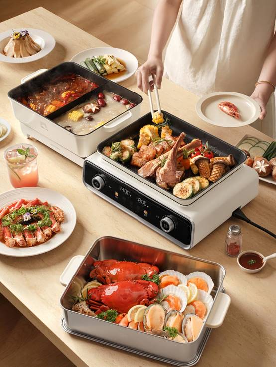 再比如許多年輕人購買多功能鍋,就是看上了它能夠集成多種功能的便利性。但實際上,大多數這類產品雖然集成許多功能,但屬于是樣樣通、樣樣松,烤肉像“熏烘”,火鍋像“慢煮”。針對這個痛點,小熊電器創新的疊疊鍋不僅可折疊,占地面積僅需0.1m²,更省空間,還重點優化了“火力”,既能支持高達2100W的猛火爆炒,也能根據不同鍋具智能分配火力。
