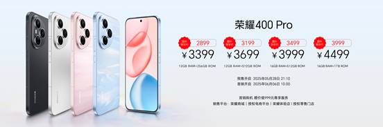 據了解,榮耀400系列共兩個版本,分別為榮耀400與榮耀400 Pro,國補后起售價分別為2124.15元、2899元,目前已經開啟預約,6月6日10:00全渠道正式開售。