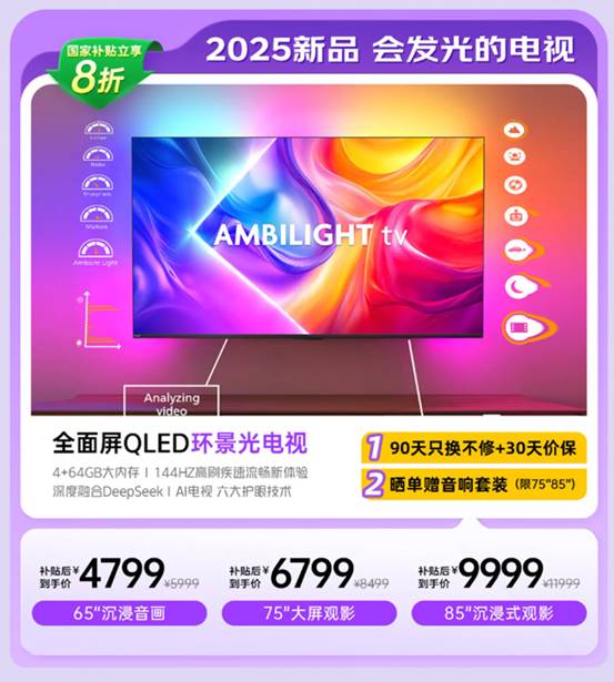 - 光影交織,智啟新境!飛利浦PQF8580環(huán)景光電視震撼登場