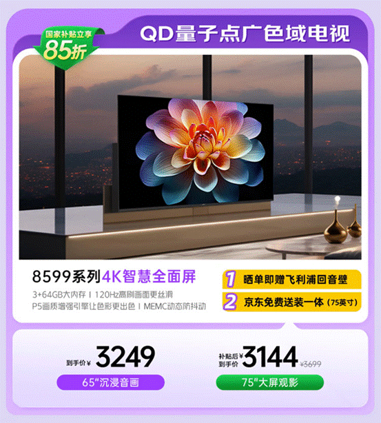 飛利浦電視雙11提前搶!至高20%國家補(bǔ)貼+多重好禮相贈(zèng)