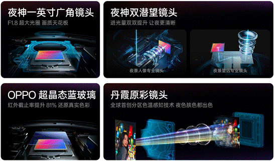 Find X8 Ultra 的 70mm 夜景人像專業鏡頭采用 F2.1 超大光圈,進光量提升至 150%,可大幅提升夜景人像的清晰度和純凈度;搭配首個超晶態藍玻璃(紅外截止效率提升 81%),解決夜景偏色難題,還原真實膚色。135mm 夜景人像望遠鏡頭是當下手機中原生光學焦段最遠的鏡頭,采用全新的 F3.1 超長焦大光圈設計和 OPPO 獨有的倒置潛望結構,進光量大幅提升至 251%,無論白天夜晚,都可以將遠方畫面的細節清晰記錄。23mm 的一英寸廣角鏡頭,無懼明暗光影,各種場景全面駕馭,還支持額外的 28mm、35mm、47mm 三個高品質焦段的隨心切換。全新 5000 萬像素超廣角攝像頭,采用 F2.0 超大光圈,更提供超廣視野,帶來更具震撼力的構圖選項。